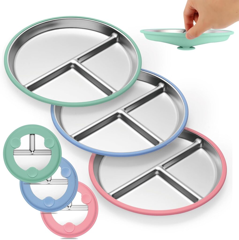 iconfont Stainless Steel Toddler Plate, 9 Inch Suction Plates for Toddlers