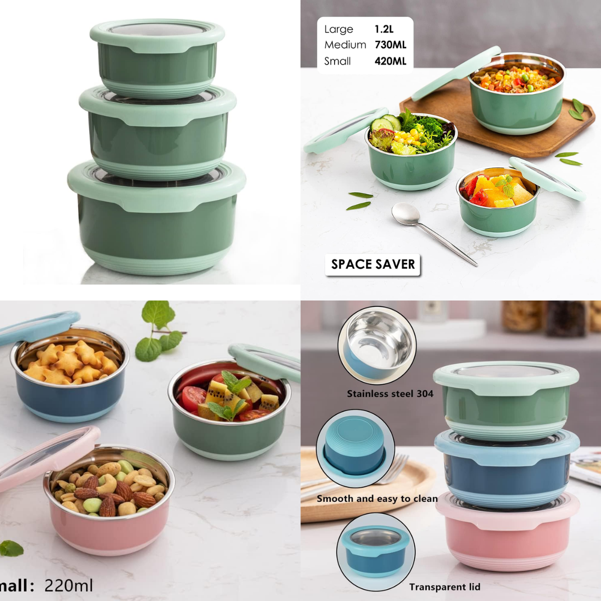 3-pk stainless steel containers, $13-14+