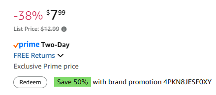 $3+(reg.12+) with a price drop + 50% off redeemable code 4PKN8JESF0XY (click redeem under the price, see picture below)