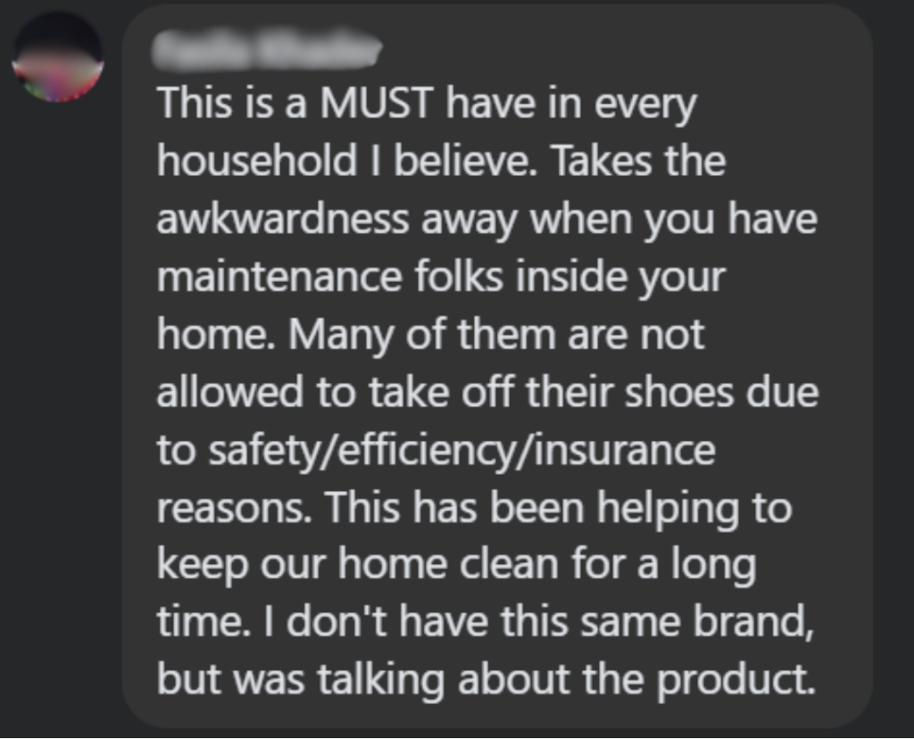 A group member’s feedback on using shoe covers👇🏻