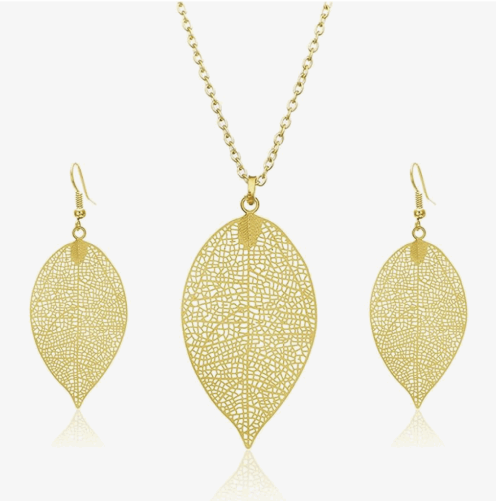 WCRAZYE Filigree Leaf Pendant Necklace Earrings Set