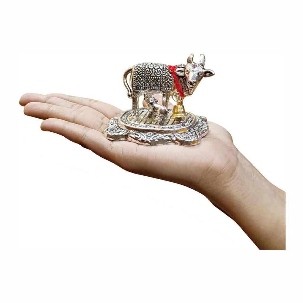Antique Small Kamdhenu Cow with Calf Metal Statue makes an amazing gift for different occasions