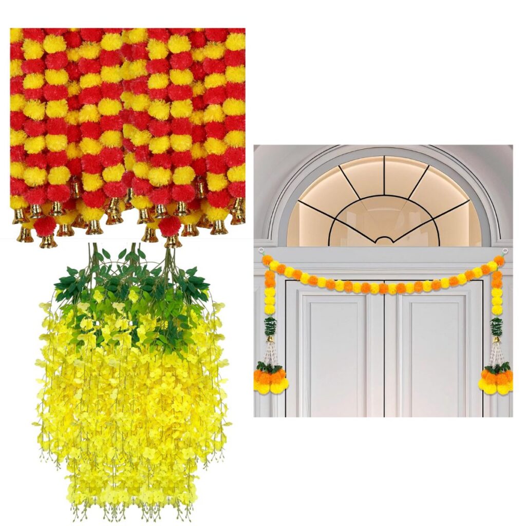 ⏩Marubhumi 5-PC Artificial Marigold Flower Garland – 4.5 Feet, $9+