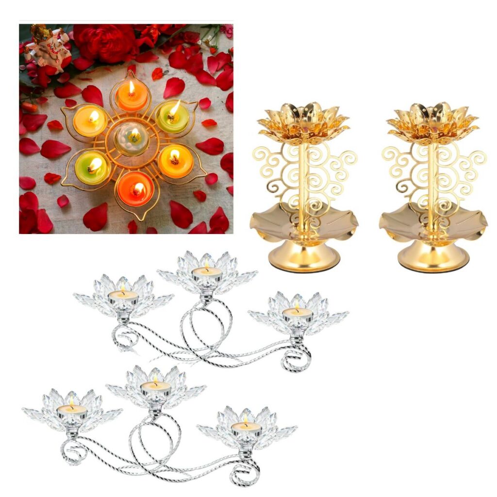 ⏩kehail 2Pcs, 3-Arm Flower Shaped Crystal Tealight Candle holders, $19+