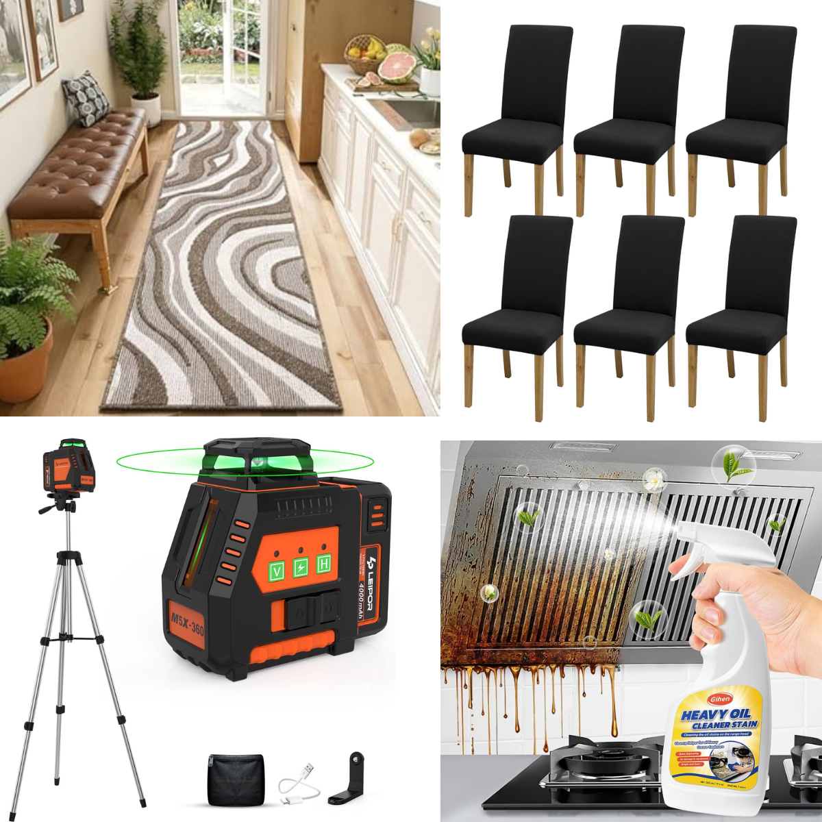 Laser with Tripod $29+ | degreaser spray $6+ | 6 Dining Chair Covers $9+ | Washable Runners from $16+