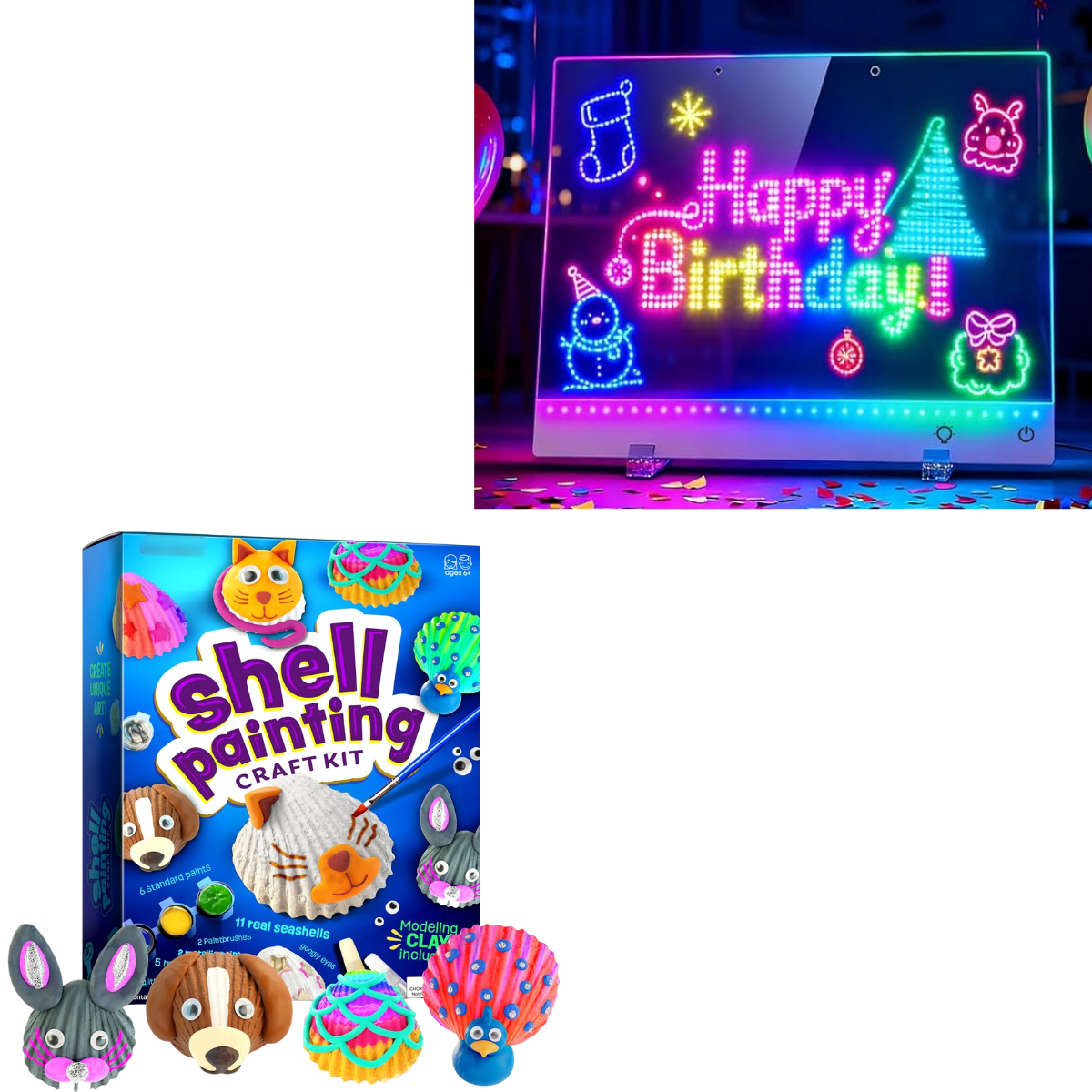 LED drawing board, $14+ | Shell painting kit, $9+