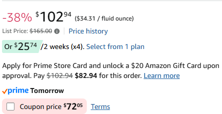 $37+(Reg $98+) for 1.7fl oz at amazonat Amazon