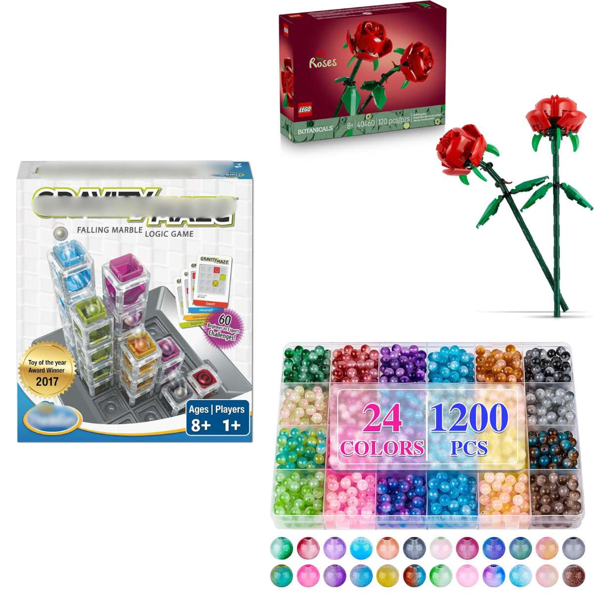 Rose building set, $9+ | Bracelet kit, $4+ | Marble game, $15+