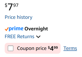 Select options for $4+ on Amazon when you clip extra $ off coupon. Your price goes lower if you choose S&S (free to cancel anytime).