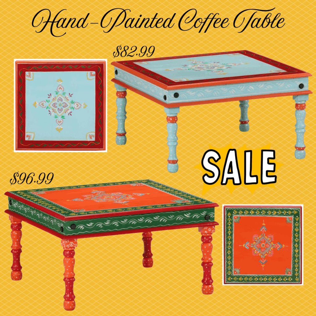 ✨ Hand-painted coffee table ($82-$96) is on SALE for Wayday + free shipping!! Perfect for ethnic-themed decor or even as a mandap table