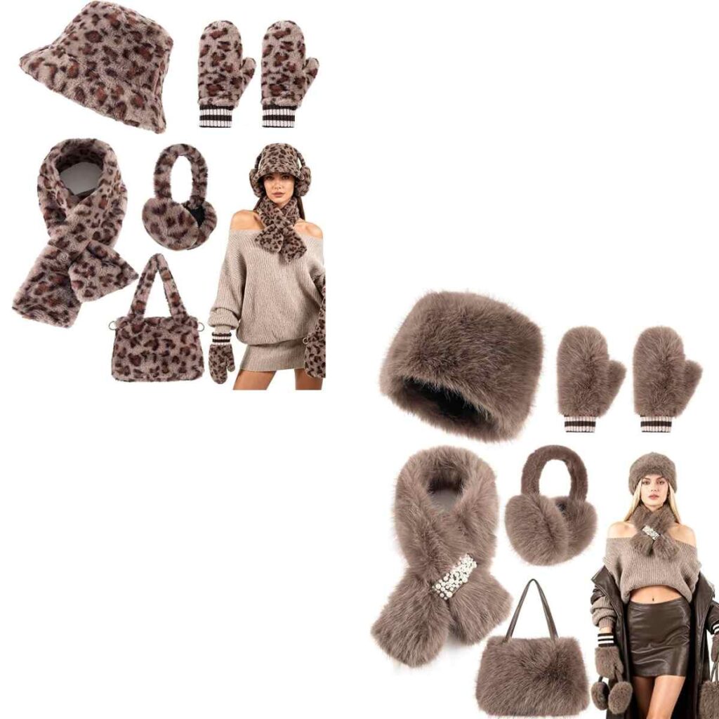 Includes Faux Fox Fur Handbag, Matching Scarf, Warm Gloves, Cozy Ear Muffs, and Stylish Hat