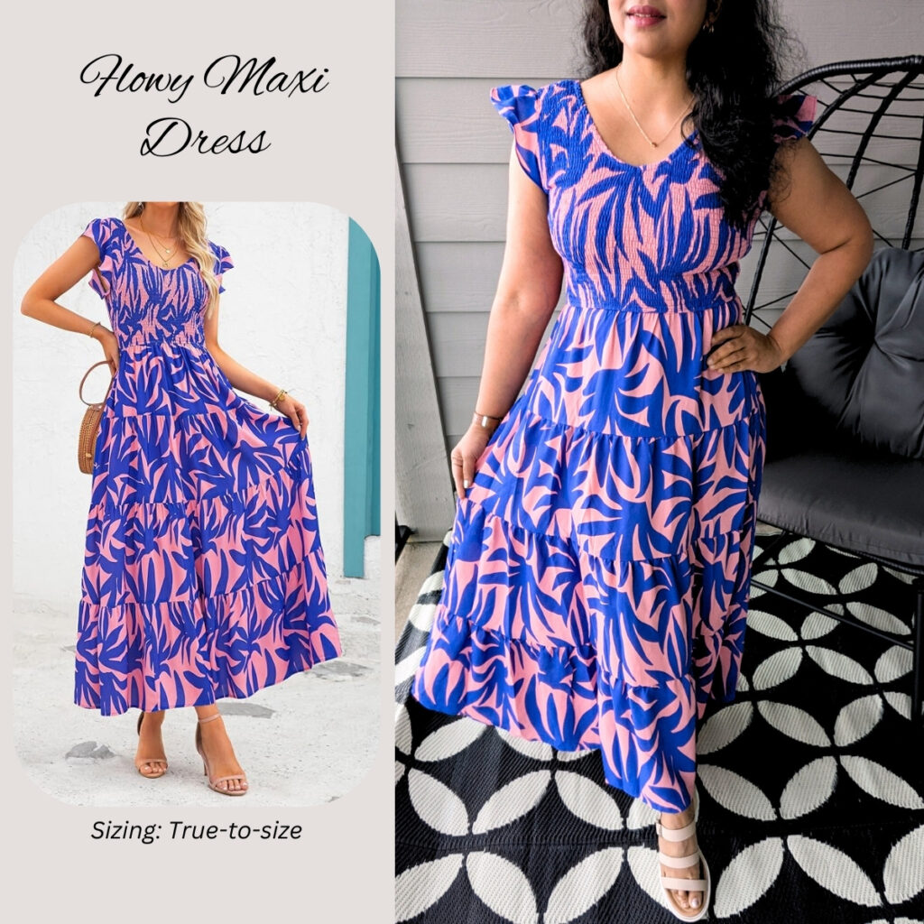 I grabbed this dress in Print Pink Purple in size medium (my usual) and it fits true to size. I tend to gravitate toward solid colors, but I’m making an effort to add more patterns to my wardrobe. This print was a bold choice for me, and I’m so happy with how it turned out—it’s even better than I imagined! The polyester fabric gives the dress a beautiful, flowy fit. It’s available in 16 stunning colors (including solids) and prints.
