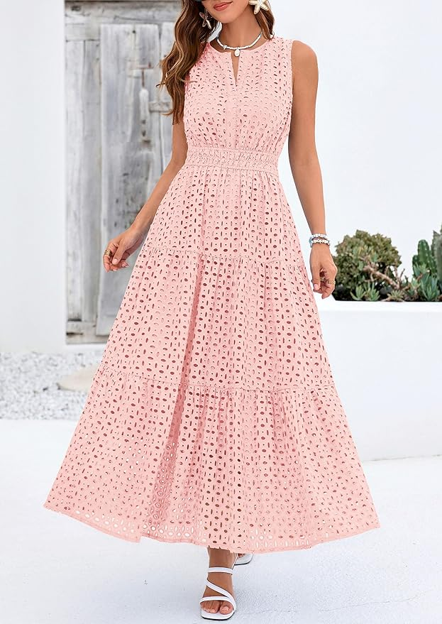 PRETTYGARDEN Eyelet Maxi Dress